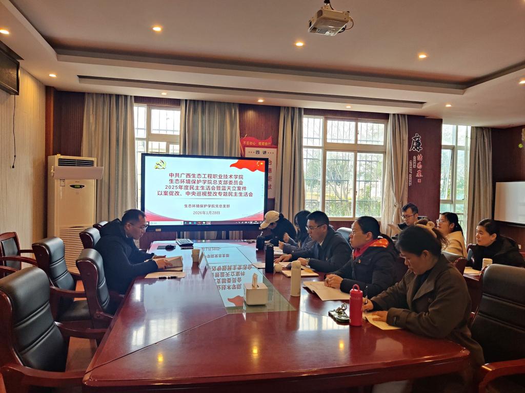 1月28日上午,生态环境保护学院党总支召开2025年党员领导班子民主生活会暨蓝天立案件以案促改、中央巡视整改专题民主生活会。学校党委委员、教务处处长黎森到会指导。学院领导班子参加会议,党总支支委、党支部书记、党外人士代表列席会议。会议由学院党总支书记陈福坤主持。